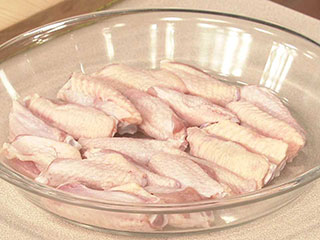 鶏の手羽中を2つ割りにしたもの。手に入らないときは自分で作ることができる。手羽先の先端を関節から切り離して手羽中を作り、手羽中の中央に包丁を入れて2つに切り分ける。骨つきの細い身2本になる。