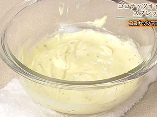 マヨネーズとココナッツオイルを合わせるときは、液状のオイルを少しずつ加えて混ぜること(分離しないように)。