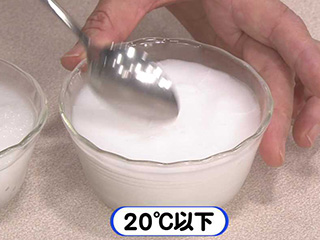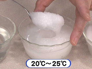 白濁したクリーム状。スプーンですくえるとろりとしたやわらかさになる。