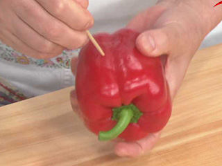 パプリカに竹串を刺しておくと、割れる心配もなくなります。