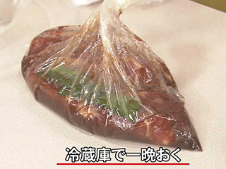 肉を漬け込むときは厚手のポリ袋を使うことをおすすめ。空気をしっかり抜けば、少量の漬け汁でも肉によくからむ。