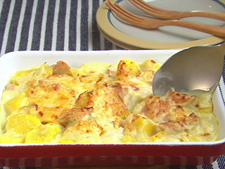ホワイトソースを作らずに、牛乳を加えてブールマニエでとろみをつけるのがポイントです。