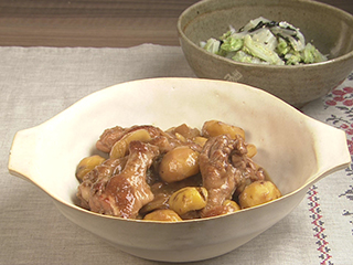 栗は炒めると崩れてしまうので、煮ている途中で加えます。