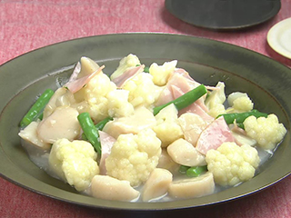 カリフラワーは竹串がスーッと通るまでやわらかくゆで、甘みを引き出します。