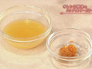 オレンジ 1/2個分の果汁と、オレンジ 1/2個分の皮をおろしたもの。