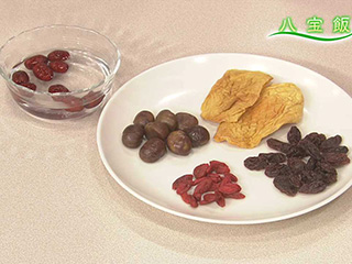 甘栗、なつめ、レーズン、クコの実、ドライマンゴー。このほかに、くるみや松の実、いろいろな種類の甘納豆やドライチェリーなどもよい。