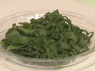 わかめは平たい葉をしていて、中央に茎と呼ばれる太い筋がある。葉をはずして筋だけ集めたものが茎わかめで、ほとんどが湯通し塩蔵で出回る。わかめ同様にビタミンやミネラルが豊富な、ノーエネルギー食材。