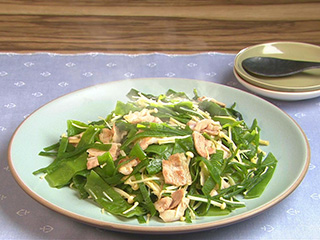 わかめは平たい葉をしていて、中央に茎と呼ばれる太い筋がある。葉をはずして筋だけ集めたものが茎わかめで、ほとんどが湯通し塩蔵で出回る。わかめ同様にビタミンやミネラルが豊富な、ノーエネルギー食材。