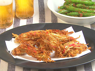 材料がバラバラにならないように衣はよくからめて揚げる前に必ず軽く握ることがポイント。