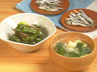 豆腐とわかめのみそ汁/ピーマンと煮干しのくたくた煮