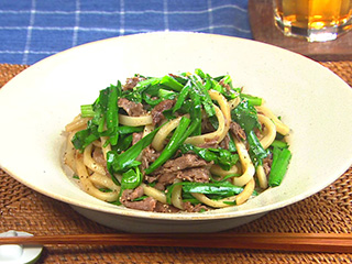 しょうゆの水分でうどんをほぐすので、うどんを投入したらすぐ、しょうゆも加えること。