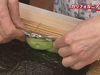 きゅうり、かにかまぼこ、アボカドをのせる。