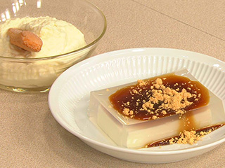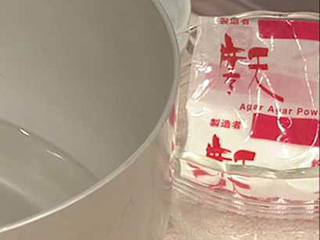 テングサやオゴリノリなどの海藻から作られる寒天。歯切れがよく、ほろりとした食感で、常温で固まり、常温でも溶けません。裏ごしが不要の粉末状が使いやすく、水ようかんやところてん、杏仁豆腐作りに使われます。