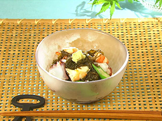 もずくは、北海道西南部から沖縄までの日本の沿岸で広く採れる海藻。細いものと九州南部から沖縄にかけて採れる太めのものがある。沖縄で盛んに養殖されているので、市販されているのは沖縄産が多い。洗わずに使えるものもあるが、今回はさっと洗って使う。