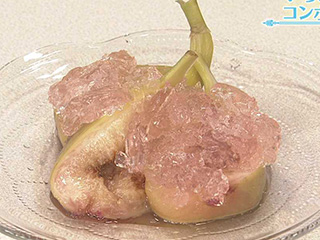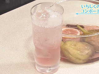 グラスにいちじくのコンポートのシロップと氷を入れ、炭酸水を注ぐ。シロップと炭酸水の割合は好みで。