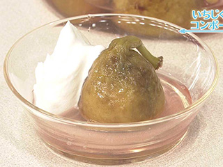 生クリーム200mlに砂糖大さじ2の割合でボウルに入れ、ゆるくとろみがつくまで泡立てる。器にいちじくのコンポートを盛り、シロップ少々をかけ、生クリームをかける。