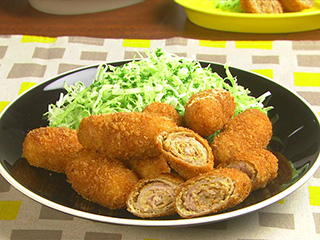 肉にごまみそソースをぬって巻く、ソースいらずのカツです。