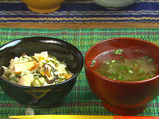 カチューとは「かつお」のこと。お椀に材料を入れて熱湯を注ぐだけの超スピード汁。