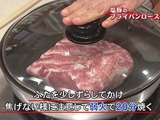 フライパンで焼くときは、豚肉が蒸した感じにならないように、ふたを少しずらして!!
