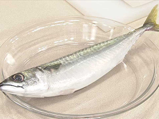 写真は真さば。胴が丸く、弾力のあるものは脂がのっている証拠。鮮度の見分けは難しいが、背側のまだら模様が濃く、腹側がきれいな銀白色をしているものが新鮮。