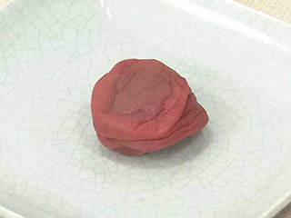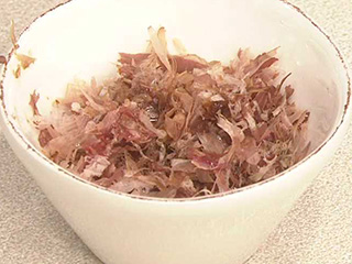 梅干しの果肉1個分を包丁で細かく叩き、削りがつお1パック(3g)、しょうゆ小さじ1/2を加えて混ぜる。