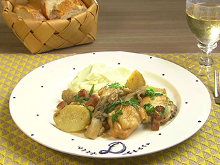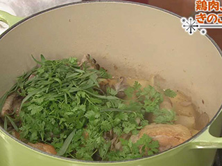鶏肉、じゃが芋、舞茸をそれぞれを香ばしく焼きつけてから蒸し煮にすることが大切なポイントです。
