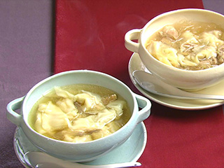 ワンタンは別にゆでておくと、ツルリとした食感が楽しめるので、ちょっと面倒でもゆでておきましょうね。
