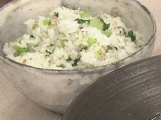 もう一品の菜めしの小松菜は塩をふって炒めて余分な水分をとばします。