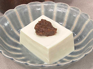 絹ごし豆腐をやっこに切り、しょうゆ麹適量をのせる。豆腐は冷たくても、温かくてもよい。