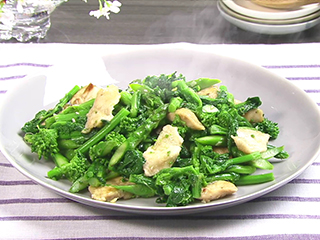 菜の花は茎を少し切って水につけてツンとさせておくと、炒めてもシャキっとします。