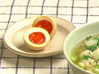 卵は沸騰したところに静かに入れ(乱暴にしない)、ゆで上がりは水にとりヒビを入れ、すぐに殻をむくこと。