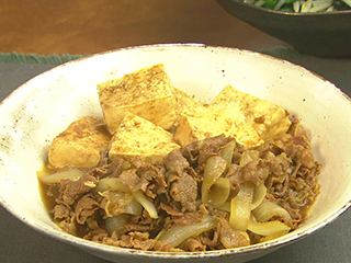 豆腐は水きりはせず、少ない煮汁で煮るのが特徴です(豆腐の水分も利用する)。