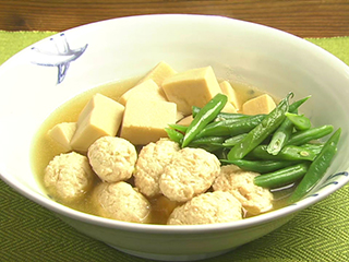 高野豆腐は袋の表示通りにもどし、芯がなくなるまでもどして水気をしっかり絞ること。