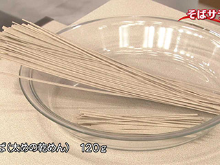 そばの実の殻を除き、甘皮もひき込んだ“挽きぐるみ”の粗びきのそば粉を使ったそばで、色が黒っぽく、太めのものが一般的。今回はこの田舎そばがおすすめ。