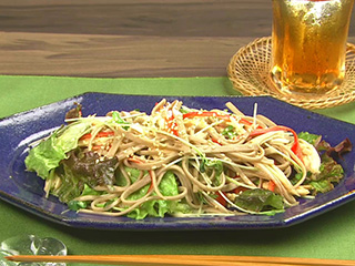 そばの実の殻を除き、甘皮もひき込んだ“挽きぐるみ”の粗びきのそば粉を使ったそばで、色が黒っぽく、太めのものが一般的。今回はこの田舎そばがおすすめ。