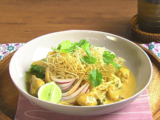 このカレー、タイ北部でよく食べられているカレーラーメンです。