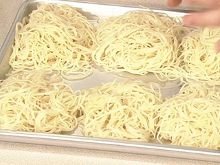 小麦粉、卵、塩を主材料としためんで、コシが強くてのびにくいのが特徴。ラーメンやあえめんとして食べられ、乾めんと生めんがある。ここでは細めのものがおすすめ。