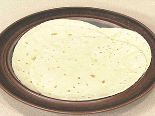 メキシコや中央アメリカなどで食べられる伝統的な薄焼きパン。すりつぶしたとうもろこしから作るほか、小麦粉から作られるものもあり、小麦粉で作ったものをフラワートルティーヤと呼ぶ。今回はこちらを使用。
