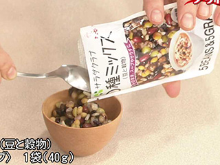 5種の豆(ひよこまめ、えんどう、レンズまめ、小豆、大豆)と5種の穀物(玄米、押麦、赤米、黒米、もち麦)の雑穀ミックス。素材本来の味が楽しめる。袋から出してそのまま使えるので、サラダのトッピング、スープや混ぜごはんの具材にも便利。