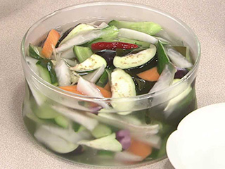 野菜は総量で700gくらいが目安。このほかに、キャベツ、かぶ、ラディッシュ、みょうが、ゆでたオクラなどでもできる。また、野菜1種だけでもよい。