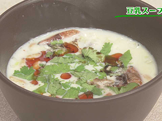もう一品のスープは豆乳は煮立たせないこと(フツフツ温まればOK)。