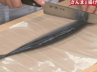 さんまは揚げる直前に小麦粉をまぶすこと。