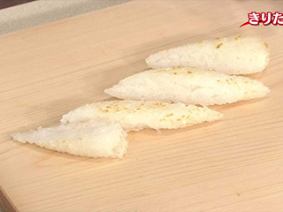 炊いたごはんをつぶし、串につけて焼いたもので、鍋に入れて“きりたんぽ鍋”や、甘みそをぬって焼く“みそたんぽ”などにも利用される。本来はつぶしたごはんだけで作るが、片栗粉を混ぜて形作りやすいようにしている。