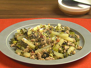 合わせ調味料に片栗粉を入れておくと、とろみがついて高菜が大根にほどよくからみます。