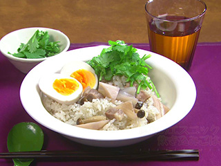 具がたくさん入る炊き込みごはんなので、鍋で炊いています。