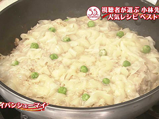 ※2017年5月23日放送フライパン蒸しに使うのは、直径24~28cmのフライパンか、深さのある中華鍋で、ぴったりとふたのできるもの。8位にランクインした“フライパンシューマイ”も、ふたつきのフライパンを使います。シューマイは食べたいけれど、普段のおかずに作るには包むのが大変と思い、包まない方法を考えたもの。