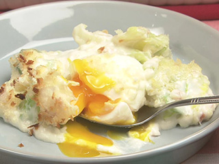 半熟卵のカギは焼き時間、短い時間で焼くので(卵に火を通しすぎないように)、ソースを作ったらすぐに焼き始めること。