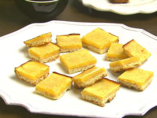 生地が焼きあがったらすぐにフィリングを流し込みたいので、様子をみてフィリングの材料を混ぜ合わせること (生地が冷めてからフィリングを流すと生地が吸ってしまい二層にならない)。