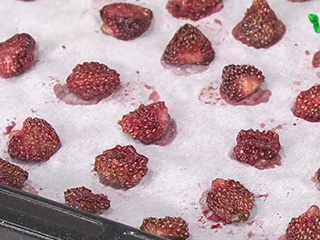 シロップをとったあとのいちごを乾燥焼きしたもの。そのままグラノーラに加えたり、水分が出てほしくないクッキーやパウンドケーキに焼き込んでも。