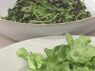 もう一品のサラダの豆苗はレンジ加熱をしておくと青臭さが消えておいしい。